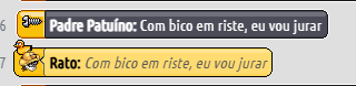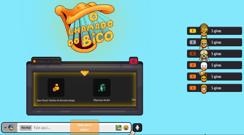 Dirija-se ao Santuário do Patoverso, preste seu juramento ao grande Deus Pateidon e receba o visual sagrado “Bico de Pato”. Apenas aqueles que trajarem este símbolo poderão participar das atividades. Patos sem bico não entram na jogada!